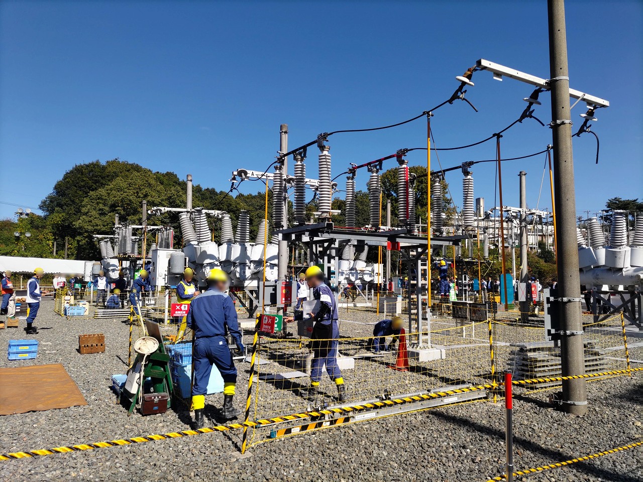 変電設備事故、架空送電線事故、配電線事故等の復旧作業を制限時間内(150~180分[各部によって違う])に行う技能発表会のことです。